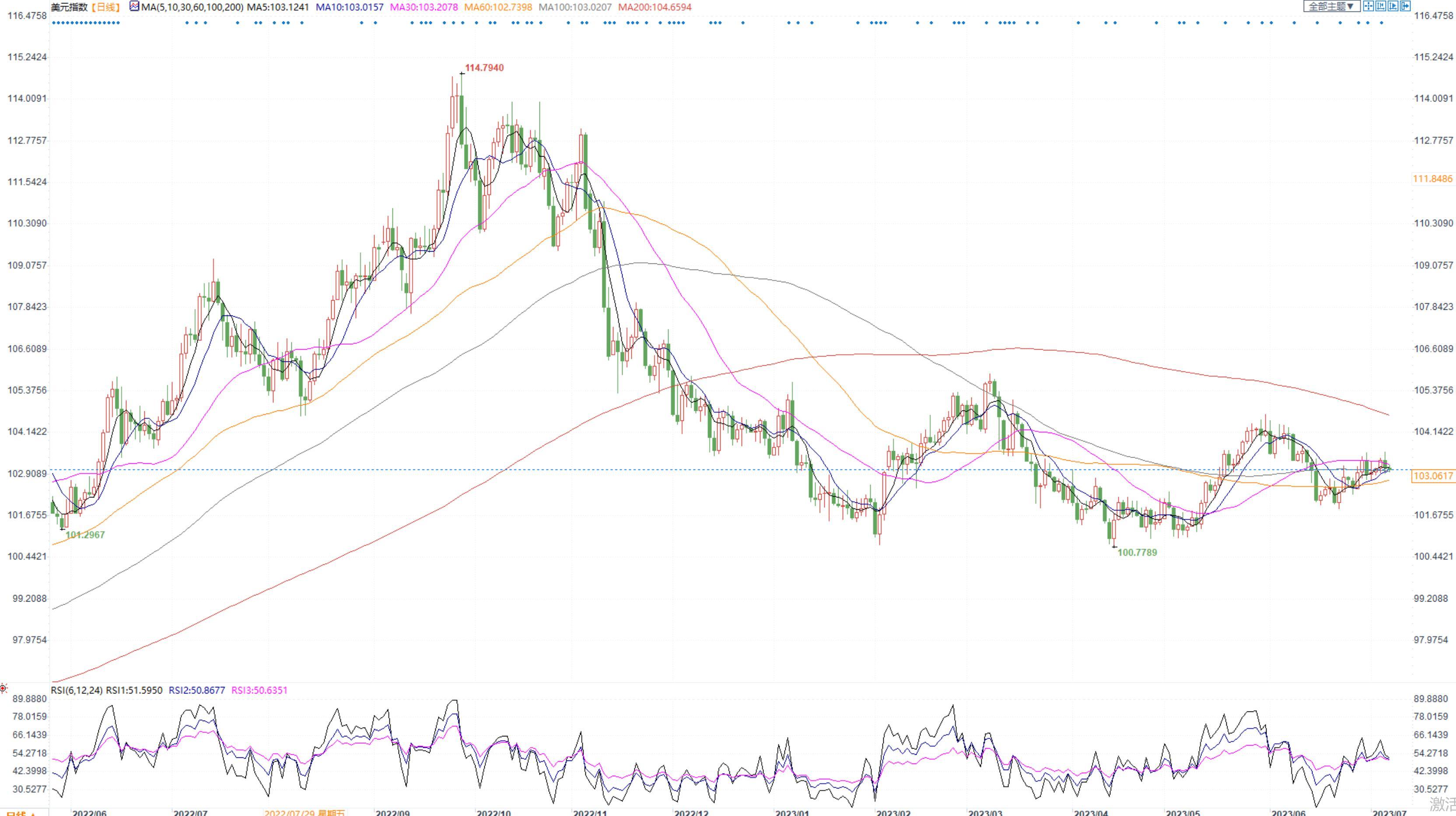 美元指数本周基本维持震荡走势,美联储7月重启加息预期升温,长期高利率的预测支持美元