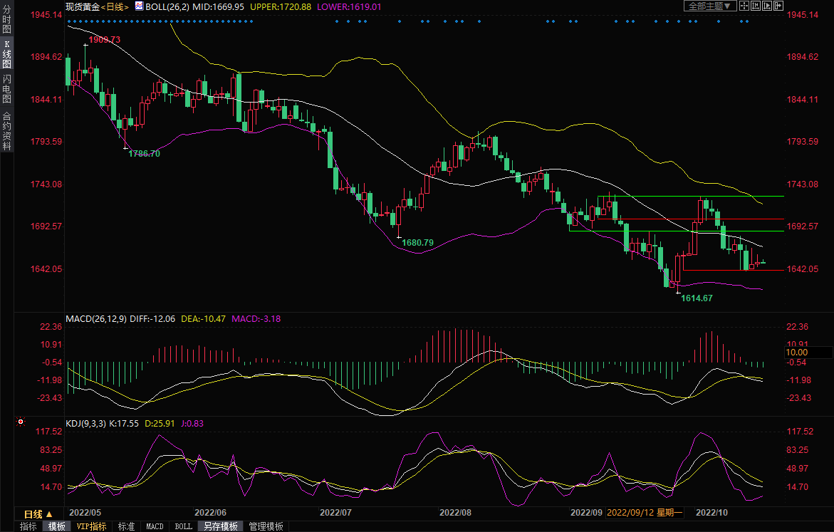 现货黄金窄幅震荡,延续隔夜的震荡走势,目前交投于1652美元/盎司附近,本周无重磅经济数据出炉,英国财政政策担忧情绪也有所降温,市场观望情绪渐浓;一方面,美联储年内将在累计加息150个基点的预期、全球多数央行进一步大幅加息的预期,压制金价。另一方面,地缘局势仍然紧张,美元小幅回调和美债收益率上涨动能减弱,也有一些逢低买盘和避险买盘支撑金价。