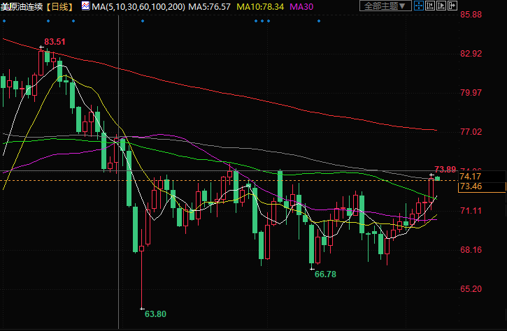 美原油交投于73.43美元/桶附近;油价上周五攀升约3%,触及九周最高,供应担忧和技术性买盘盖过了对进一步加息可能令经济增长放缓和石油需求减少的担忧。