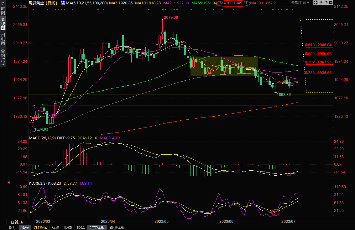 美元指数延续跌势,周二亚市最低触及101.83,为5月11日以来新低,10年期美债收益率也远离上周创下的近八个月高位,给金价提供支撑。技术面来看,金价短线看涨信号有所增加,后市有望进一步试探100日均线1950关口附近阻力。