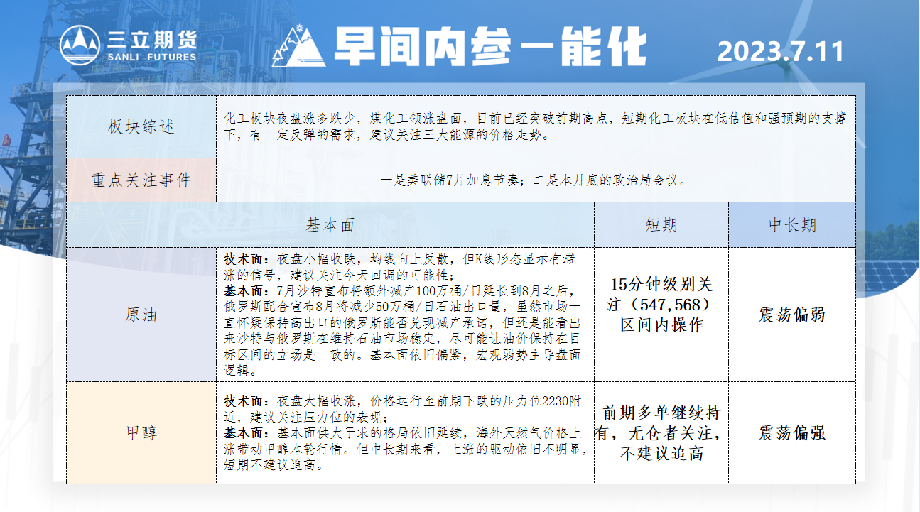 标题:三立期货7月11日早间内参——能化