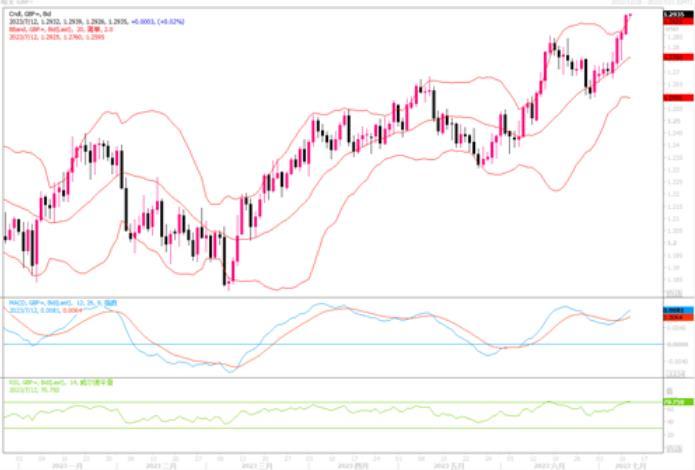 英镑兑美元稍早触及近15个月最高的1.2938,当日收盘涨幅0.58%,最终收盘在1.2935。英国国家统计局周二公布的数据显示,截至5月的三个月,英国扣除奖金的工资较上年同期增长7.3%,与记录上的最高增长率并列,这可能会加剧英国央行的通胀担忧。经济较预期强劲和市场激进地重新消化对英国央行收紧政策的预期已经在推动英镑出现强力上升的趋势。4小时图上,英镑/美元继续以较好的斜率沿着短期均线之上向上延展,技术指标配合上扬,显示英镑短期内继续受到多头盘抬捧。上方继续发展的话,1.30目标不远矣!下方初步支撑上移至1.2770-1.2800区域。