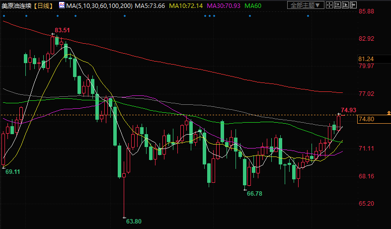 美原油现报74.80美元/桶。