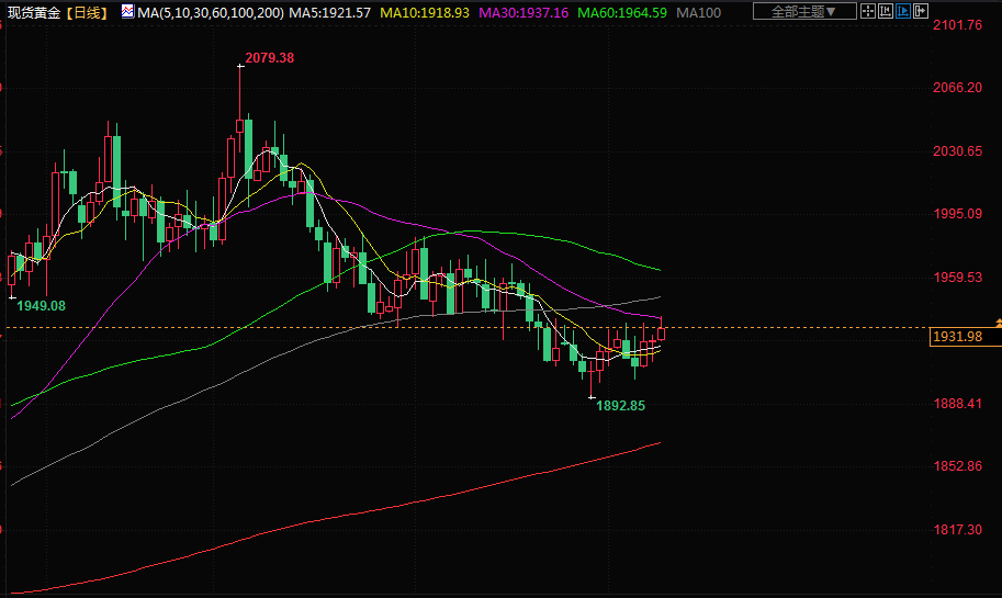 美元指数下跌0.3%,触及5月11日以来最低。指标10年期美国公债收益率也下跌。OANDA高级市场分析师Edward Moya表示:“如果通胀数据疲软,将对黄金利好,金价可能升至1950美元。如果读数高,金价也很难跌穿1900美元。加息不会击垮黄金,但可能会扼杀经济。因此,出于这个原因,黄金能得到一定的支撑。”