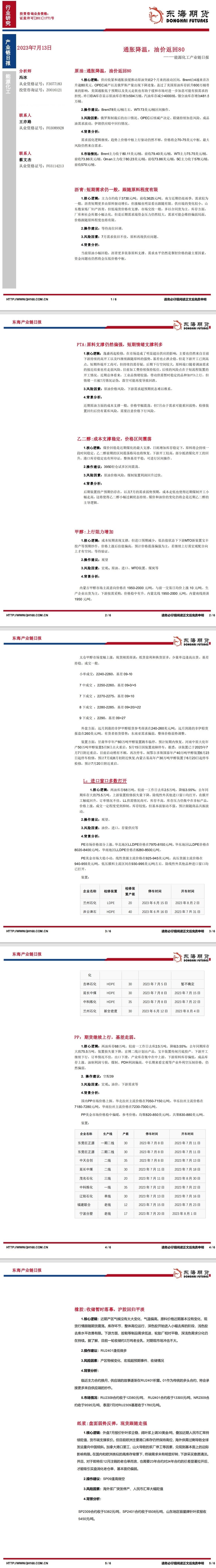 标题:【东海期货7月13日产业链日报】能化篇:通胀降温,油价返回80