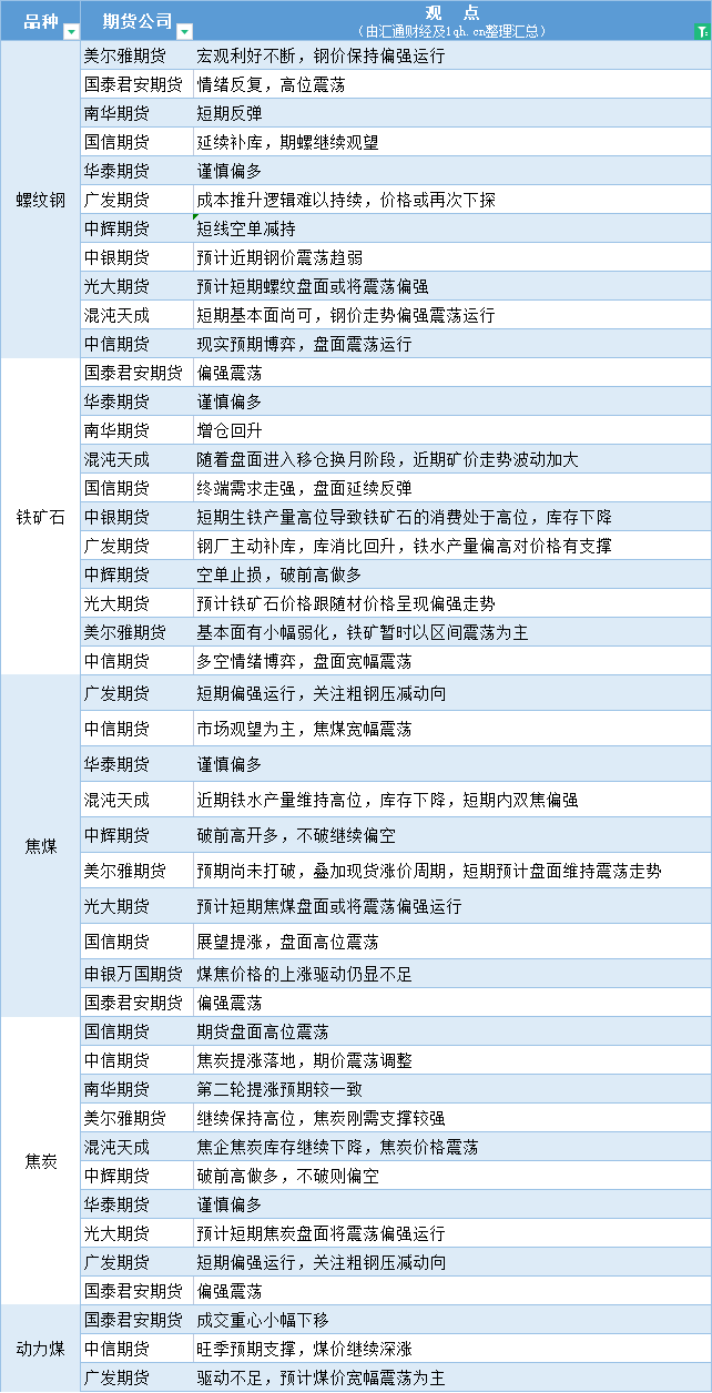 标题:期货公司观点汇总一张图:7月13日黑色系(螺纹钢、焦煤、焦炭、铁矿石、动力煤等)