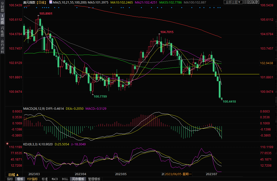美元指数小幅下探,延续隔夜跌势,一度刷新逾一年多的至100.44,目前交投于100.51附近;美元周三跌势1.05%,为1月底以来最大单日跌幅,也是连续五个交易日收跌,此前数据显示美国6月消费者物价涨幅放缓,暗示美联储今年可能只需再加息一次。