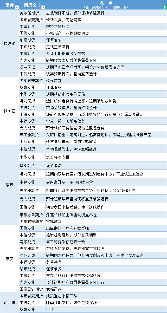 标题:期货公司观点汇总一张图:7月14日黑色系(螺纹钢、焦煤、焦炭、铁矿石、动力煤等)