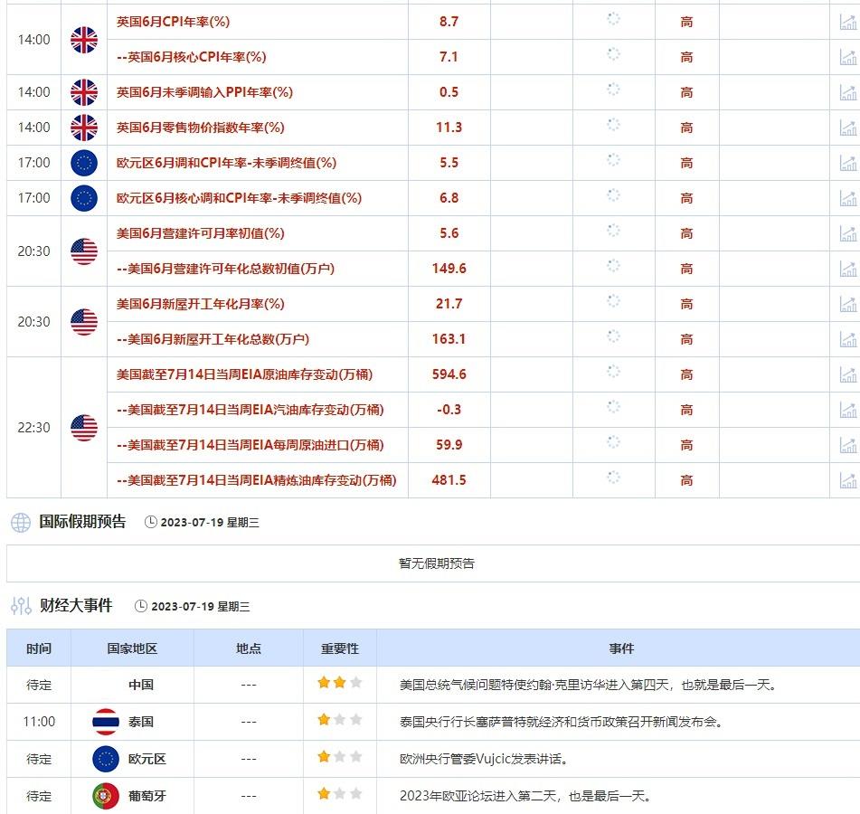 7月18日,G20财长和央行行长会议进入第二天,也是最后一天,需关注各位官员的讲话。③7月19日(周三)关键字:美国截至7月14日当周API和EIA原油库存变动,英国6月CPI