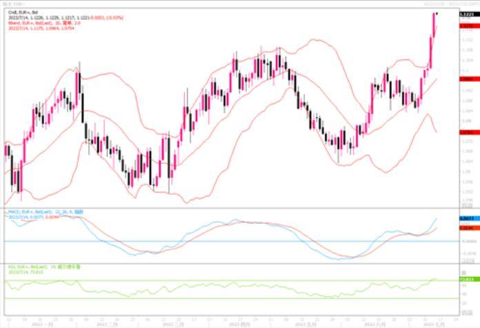 欧元兑美元继续飙涨0.9%,报1.1220美元,稍早一度触及16个月新高1.1232。美国通胀降温提振了美联储今年将仅再加息一次的预期,从而削弱了美元对比其他货币的收益率优势。周四当天,欧元区法国公布6月通胀数据与上月持平,说明欧元区通胀延续强劲。因此欧元继续加息的预期应是持高不下,这在一定程度上还是能继续给到欧元支撑。
