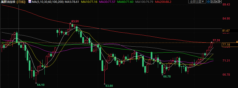 美原油现报77.17美元/桶。