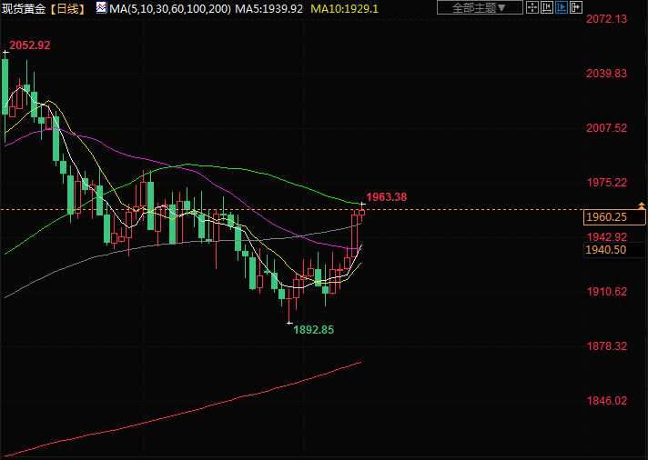 美元指数跌至一年多以来最低,令黄金对海外买家来说价格降低,指标美国公债收益率下跌,降低了持有不孳息黄金的机会成本。Blue Line Futures首席市场策略师Phillip Streible表示:“数据公布后,黄金市场强劲反弹。如果黄金能再获提振,将有机会上探2000美元大关,但我们正面临许多不同的阻力点。”