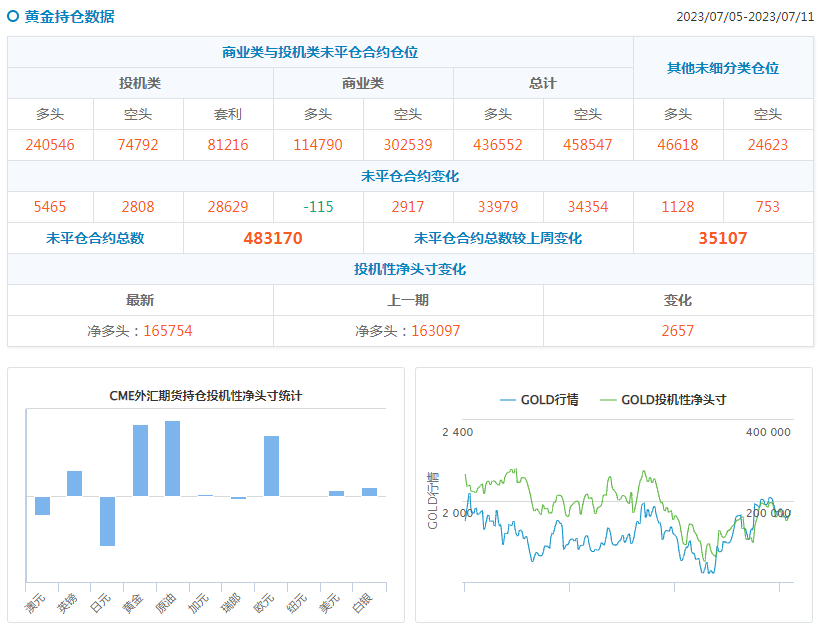 汇通财经APP讯——汇通财经据CFTC官网持仓数据:截至7月11日当周,COMEX黄金投机者将净多头头寸增加1414手至100619手,美原油期货投机性净多头头寸增加33353手至106113手。
