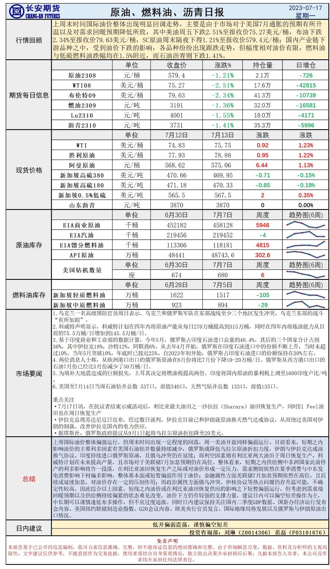 长安期货7月17日原油日报:利比亚油田恢复供应,油价或低开震荡运行