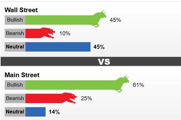 20位华尔街分析师参加了Kitco黄金调查。各有9位分析师(占45%)分别预计未来一周金价将走高和横盘整理。与此同时,两位分析师(占比10%)近期看空黄金。