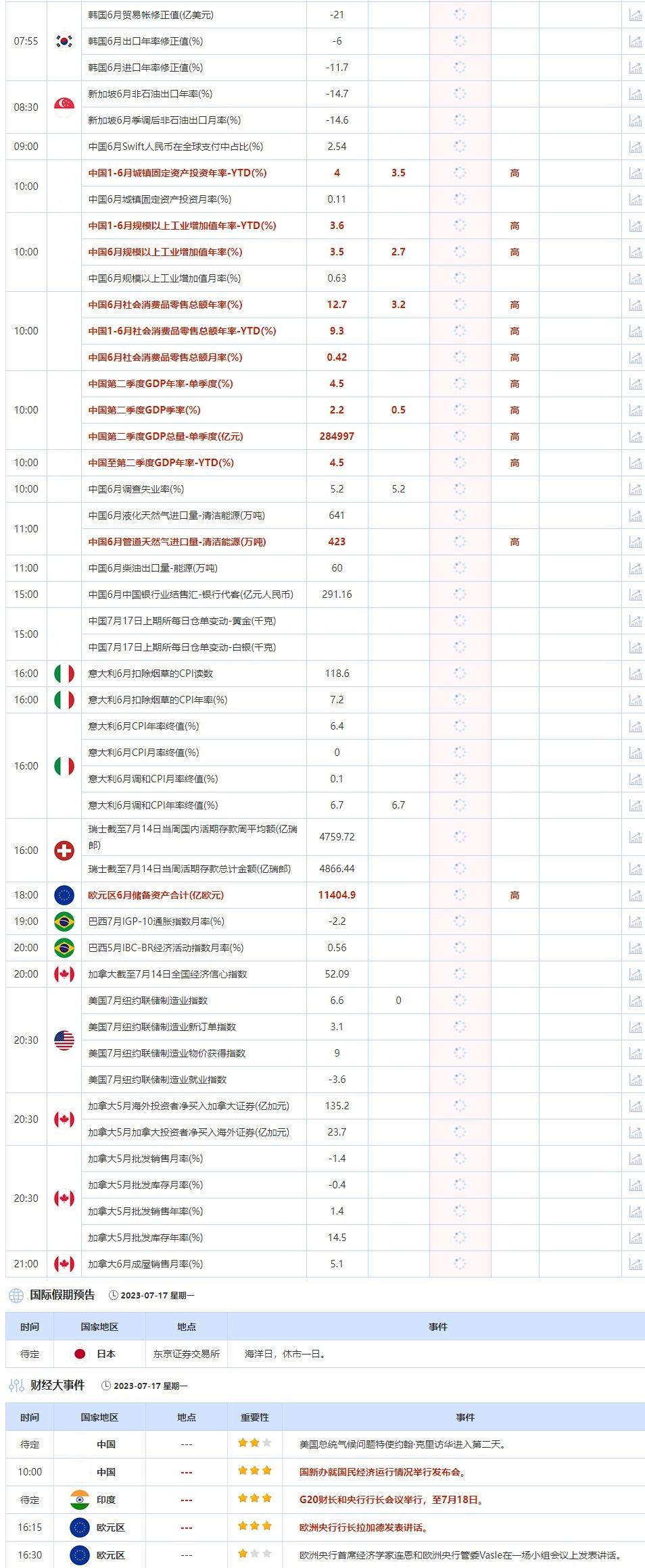 标题:7月17日重点数据和大事件前瞻