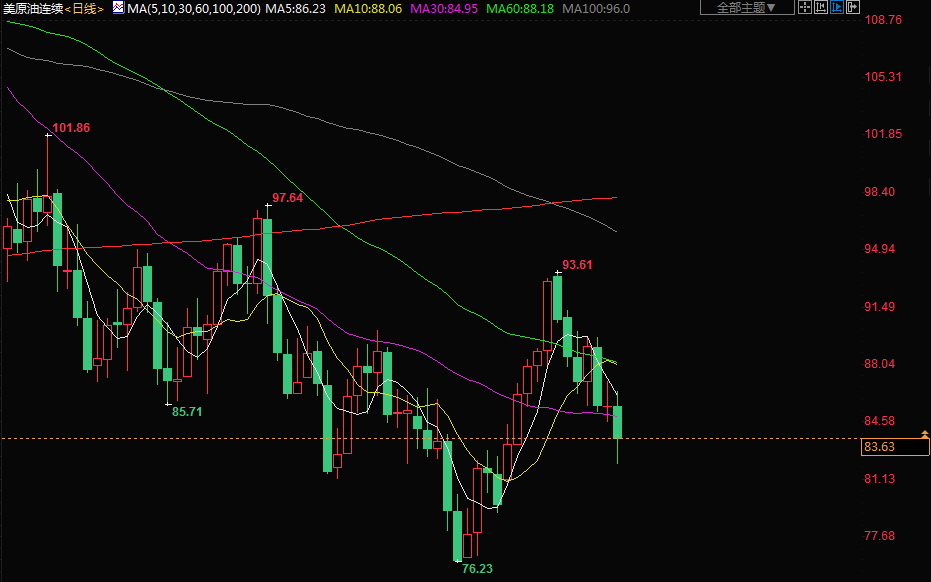 商品收盘情况:布伦特原油期货结算价下跌1.7%,报每桶90.03美元,而美国原油期货结算价下跌3.1%,报每桶82.82美元。美国期金收跌0.5%,报每盎司1655.8美元。