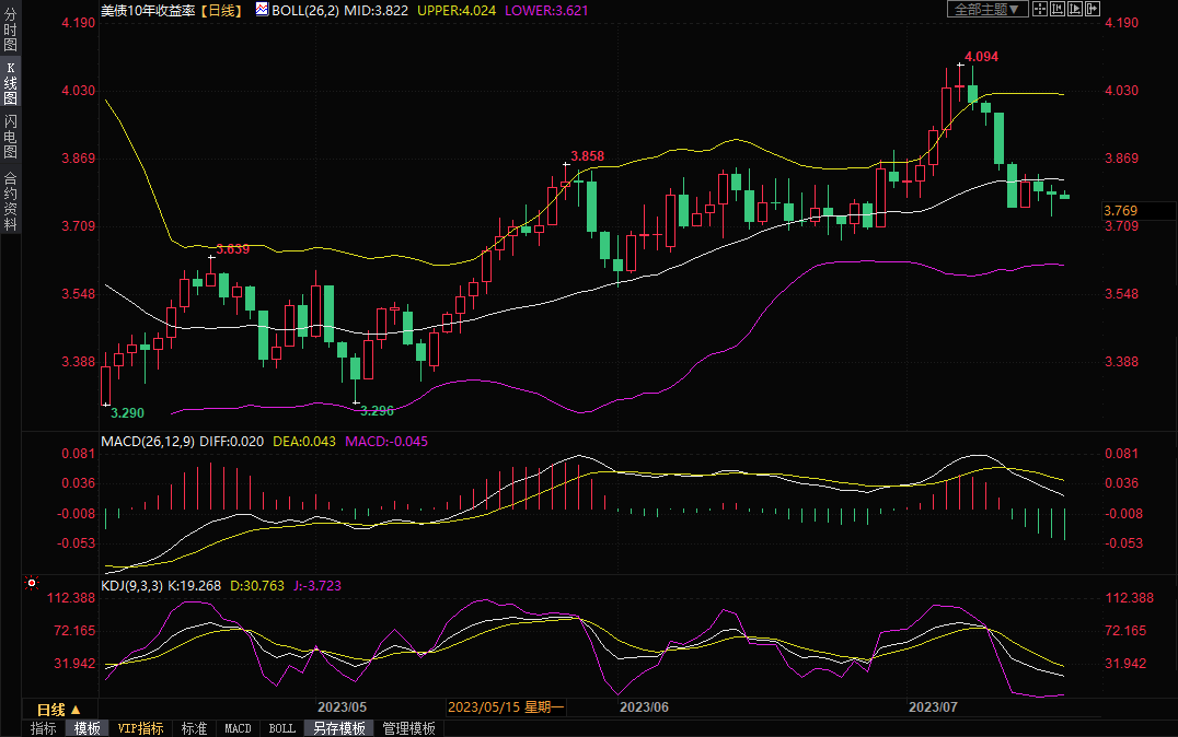 美国10年期国债收益率周二收盘小幅走弱,盘中一度创近三周新低至3.734%,收报3.790%附近,周三亚市该收益率延续跌势,截止10:22,目前下跌0.24%,交投于3.781%附近,此前数据显示美国6月零售销售增速低于预期。