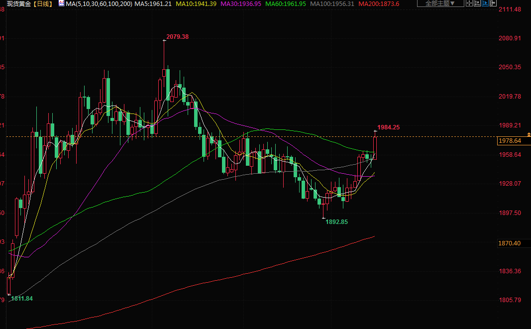 Kitco高级市场分析师Jim Wyckoff表示,“如果新的数据暗示美联储在本月再加息一次后将暂停行动,那么黄金肯定会向2000美元迈进。”