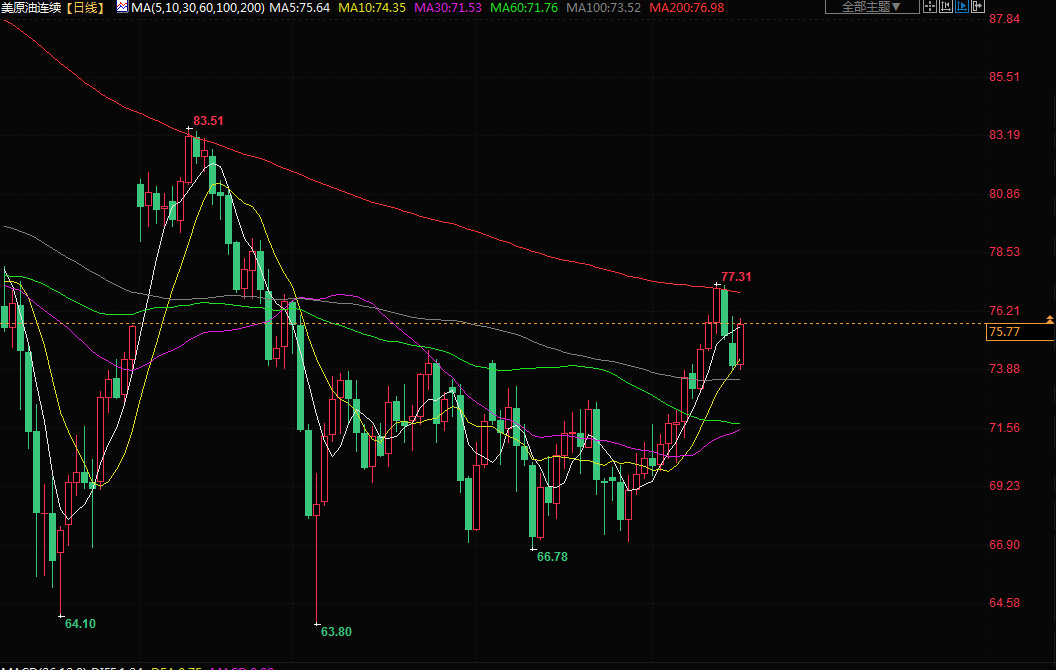 布伦特原油期货上涨1.4%,收报每桶79.63美元;美国原油期货上涨2.2%,收报每桶75.75美元。