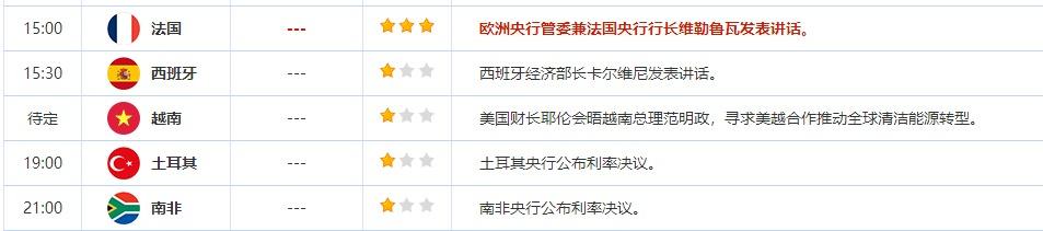 21:00 南非7月央行基准利率-回购利率(%) , 前值 8.25 , 预期值 8.25 , 公布值:待发布