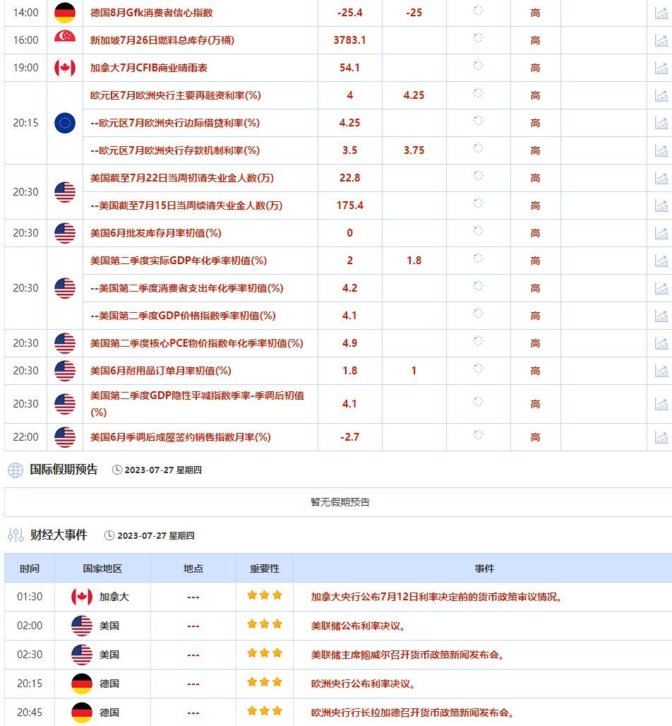 7月27日,投资者首先需要关注美联储和欧洲央行的利率决议。