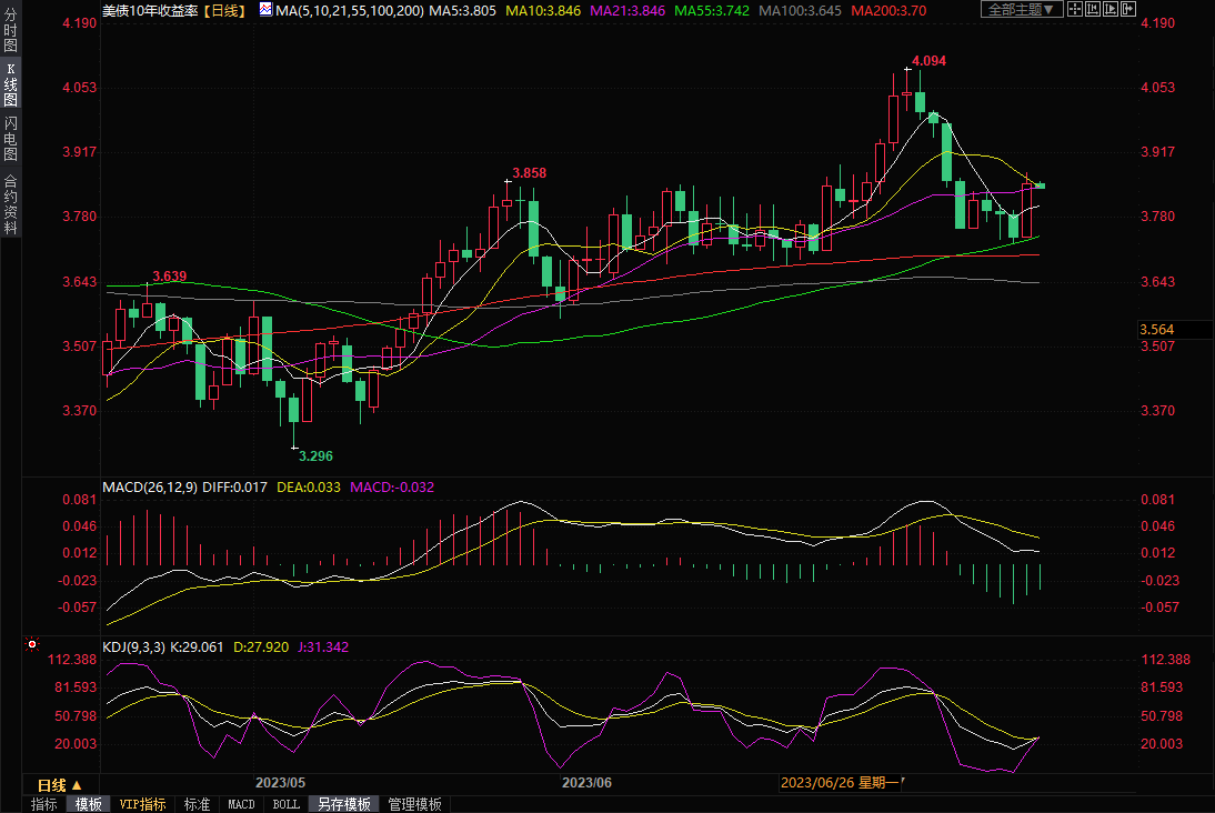 0年期国债收益率急升,盘中一度创7月12日以来新高至3.876%,盘尾报3.846%,较周三收盘时上涨10.4个基点。对利率敏感的两年期国债收益率也受数据推动上涨,盘尾报4.825%,比周三收盘时上涨7.1个基点。