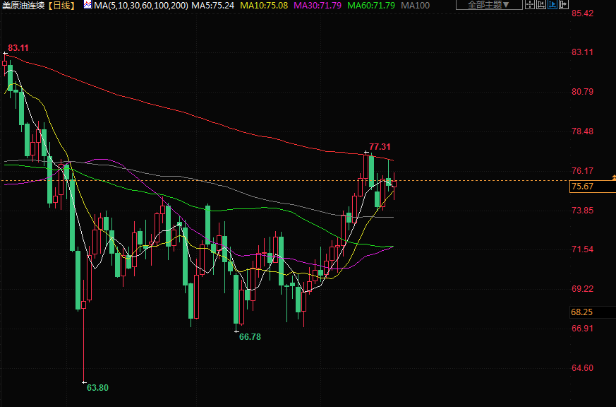 布伦特原油期货上涨0.2%,结算价报每桶79.64美元。8月美国原油期货上涨0.4%,结算价报每桶75.63美元。8月美国原油合约于周四到期。交投更活跃的9月美国原油合约收涨0.36美元,结算价报75.65美元。
