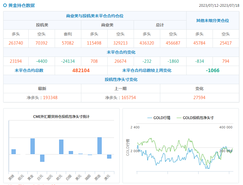 汇通财经APP讯——汇通财经据CFTC官网持仓数据:截至7月18日当周,COMEX黄金投机者将净多头头寸增加35288手至135907手,美原油期货投机性净多头头寸增加46701手,至152812手。