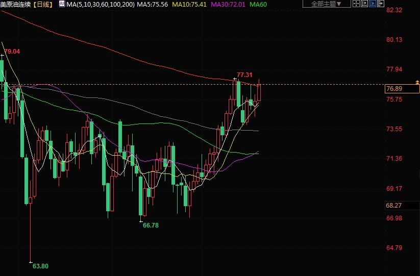 布伦特原油期货上涨1.8%,结算价报每桶81.07美元。美国原油期货上涨1.9%,结算价报每桶77.07美元。