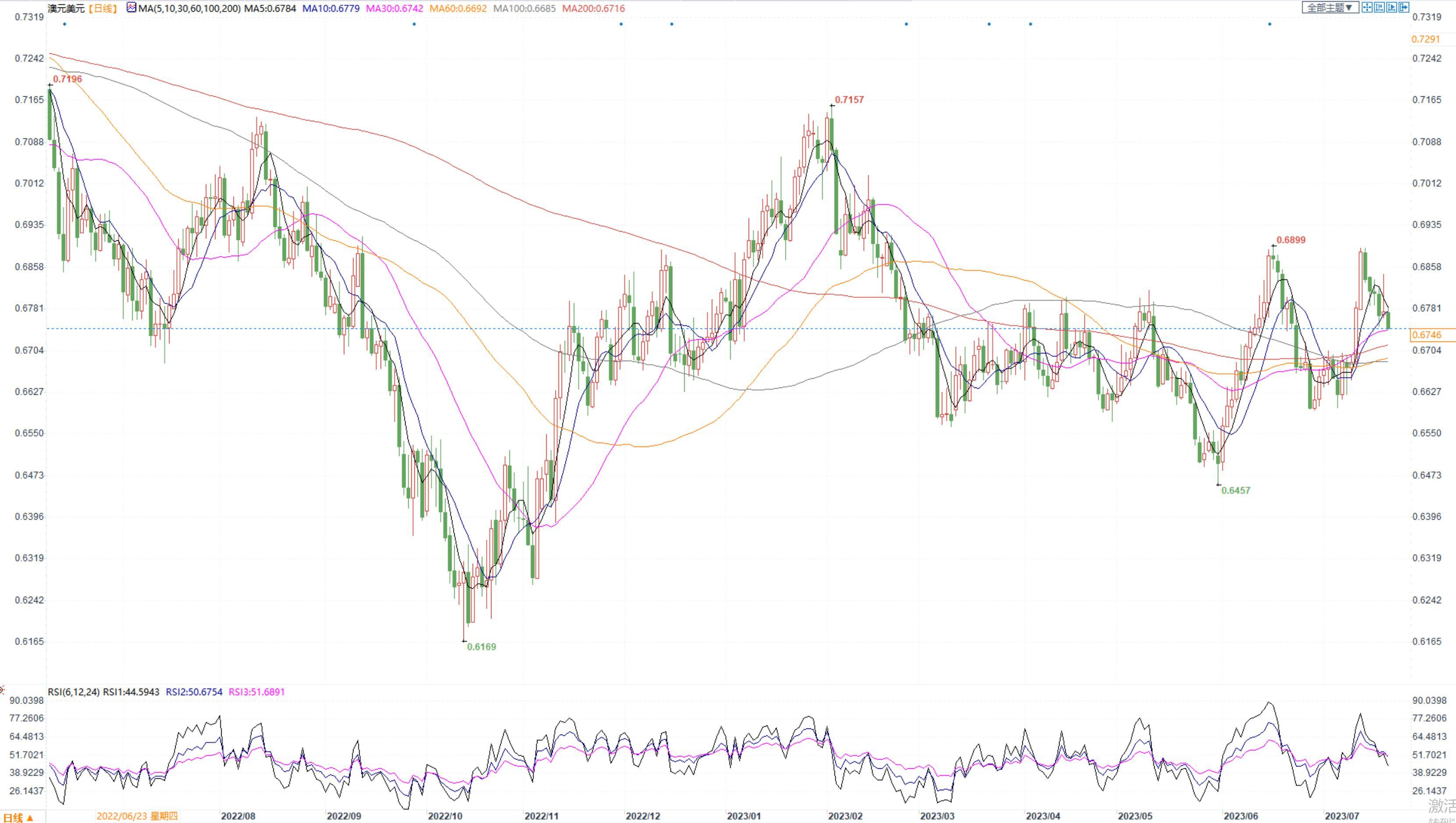 澳大利亚6月就业数据连续第二个月轻松超过预期,而失业率维持在50年低点附近,表明就业市场依然紧张,这增加了澳洲联储进一步加息的预期。