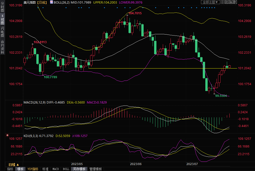 美元指数小幅上涨,目前交投于101.41附近,略低于周二创下的近两周高点101.65,美国经济极具韧性的迹象继续给美元提供支撑,欧洲经济的持续疲软也对美元有所帮助。