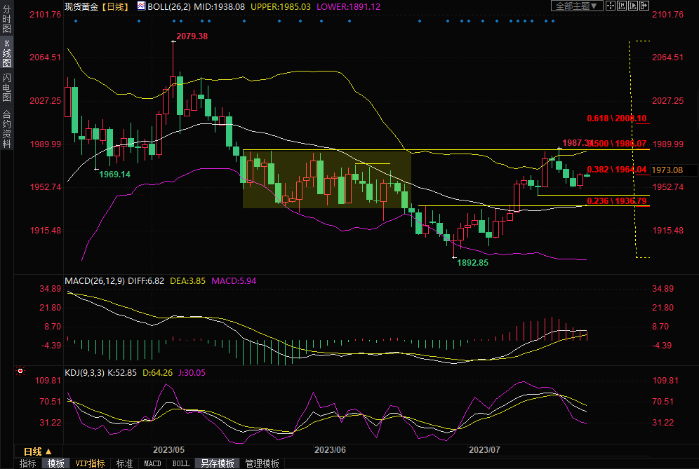 周二数据显示,美国7月消费者信心指数劲升至两年新高,这进一步降低了美联储释放鸽派信号的可能性,美债收益率升至近两周高位,美元指数也守在近两周高位附近,这令金价承压,如果晚间鲍威尔不及预期的鸽派,或将令金价面临一定的下行风险。但市场仍憧憬美联储接近加息周期尾声,而且地缘局势紧张,仍给金价提供避险支撑。鉴于周四还将出炉美国二季度GDP、美国6月耐用品订单、美国初请失业金人数变动,周五还将出炉美国6月份PCE数据,这也可能会加大投资者的观望情绪,进而影响金价的交投空间,金价本交易日宽幅震荡的可能性也比较大。