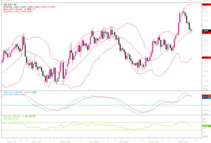 欧元兑美元连续第五个交易日下跌,跌幅为0.13%,报1.1048美元。近期欧洲经济放缓的证据与日俱增,最近的一项调查显示,欧元区第二季度贷款需求创下了历史新低,而且另有数据显示德国7月企业信心下降。周一出炉的欧元区采购经理人指数(PMI)也低于预期,令人失望,上述经济数据不佳导致欧元近期是频频回落。而美国方面,虽然经济状况仍暂时显示存在着增长的韧性,不过,经济仍未摆脱困境,世企研周二的调查提供了喜忧参半的信号。消费者仍然担心在美联储大幅加息后,明年经济会出现衰退。因此可以看出,随着美联储大幅加息以来,美国的经济发展前景也是存在衰退的隐忧的。那么本周三至周五美联储、欧央行和日本央行的利率会议显得尤为关键,投资者都希望从此次会议上寻找到上述各大央行对于下半年利率走向的明确线索。因此,在此之前,汇市波动幅度变小且谨慎。4小时短线走势图上,欧元/美元在1.10之上似乎寻求支撑,虽然仍然受压各短期均线下方,但技术指标开始钝化,显示下跌动能有所衰减。欧美利率会议前,继续留意1.10-1.1040区域的支撑力度。