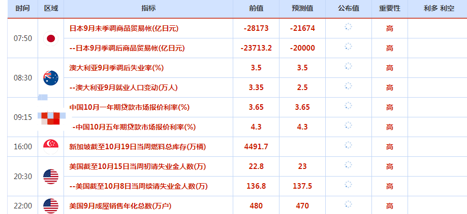北京时间周四(10月20日)亚市早盘,