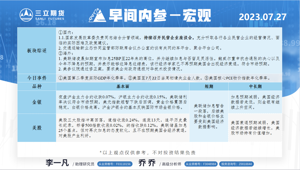 标题:三立期货7月27日早间内参——宏观
