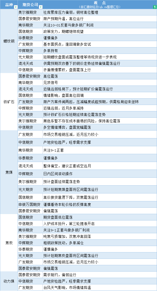 期货公司观点汇总一张图:7月28日黑色系(螺纹钢、焦煤、焦炭、铁矿石、动力煤等)