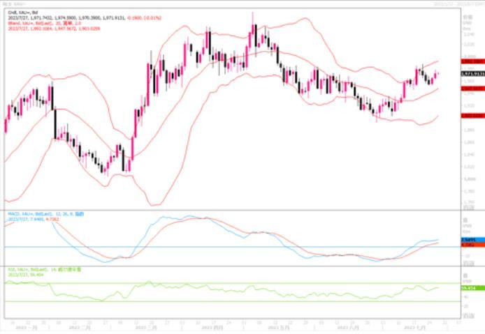 周四美国公布的一系列经济数据具体显示,美国二季度实际GDP年化季率初值实际公布2.4%,预期1.8%,前值2.0%。同时公布的其他影响力较小的数据显示,美国截至7月22日当周初请失业金人数实际公布22.1万人,预期23.5万人,前值22.8万人。美国6月耐用品订单月率初值实际公布4.7%,预期1.0%,前值1.8%。分析指出,经济前景不明朗并未阻止企业长期投资;6月份,美国工厂接到的商业设备订单连续第三个月上升,尽管经济前景越来越不明朗,但企业仍在继续进行长期投资。面对美联储大幅加息,美国经济活动表现出弹性。美国消费者价格指数已从2022年6月超过9%的峰值降至上个月的3%,而失业率仍接近历史低点,消费者信心有所改善。最近的一系列数据让经济学家和投资者燃起了希望,认为央行将实现“软着陆”这一罕见壮举,极有可能在不造成重大经济损失的情况下控制好通胀。在周三第十一加息之后,联储主席鲍威尔就曾表示,我们将能够实现通胀回落到我们的目标,而不会出现导致大量失业的真正的严重衰退。他还指出了风险:从边际来看,随着时间的推移,更强劲的增长可能会导致通胀上升,这需要货币政策采取适当的应对措施,因此我们将密切关注。这当中的潜台词就是,美联储今后为控制通胀回到目标之内继续加息的可能性仍难以排除。风云跌宕之机,黄金继续面临的区间震荡走势似乎也就在所难免了。