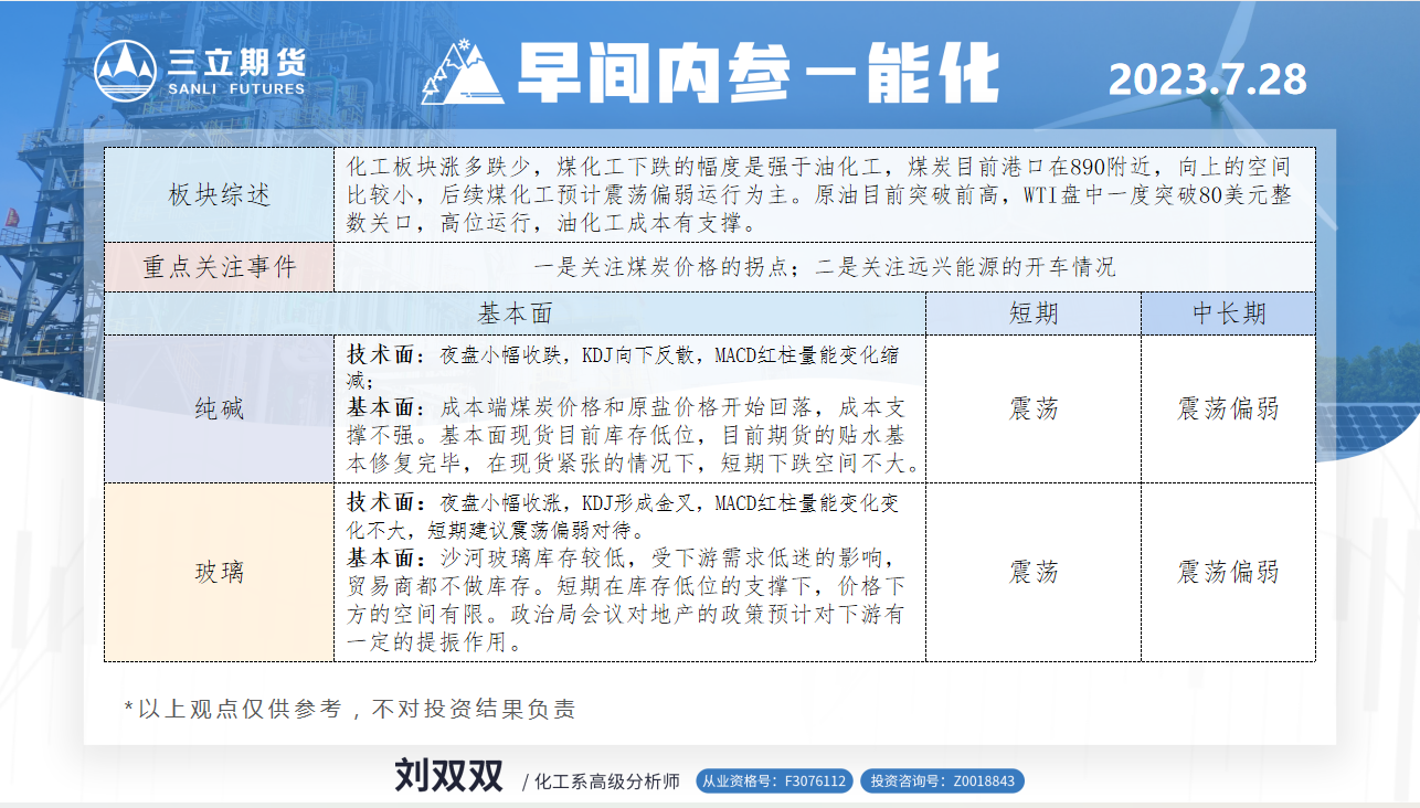 三立期货早间内参显示,纯碱期货短线偏向震荡;玻璃期货短线偏向震荡。
