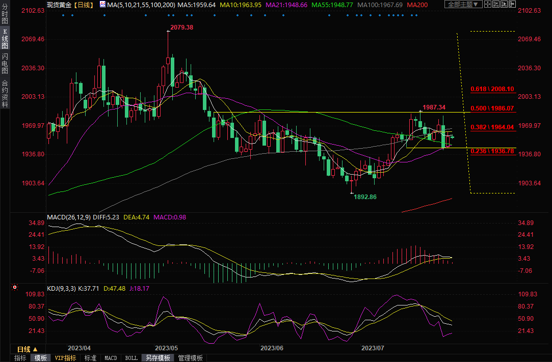 整体来看,对美联储将结束加息周期的预期,有望在中长线给金价提供支撑,但短线而言,美元和美债收益率仍偏向强势,在收复100日均线1967.88前,金价技术面也偏向空头,投资者需要提防金价短线的进一步下行风险,留意上周低点和布林线中轨1942.50附近的双重支撑,如果下破该支撑,金价或将加速下跌。