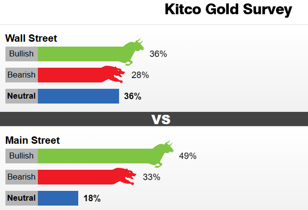 上周,14位华尔街分析师参加了Kitco News的黄金调查。看涨和中立立场各获得5票,即36%。与此同时,4位(占28%)分析师看空未来一周的金价。