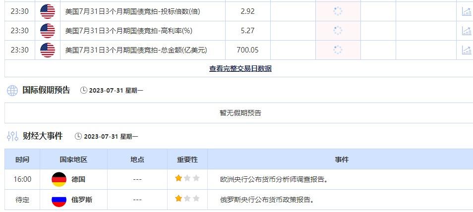 23:30 美国7月31日3个月期国债竞拍-总金额(亿美元) , 前值 700.05 , 预期值 -- , 公布值:待发布