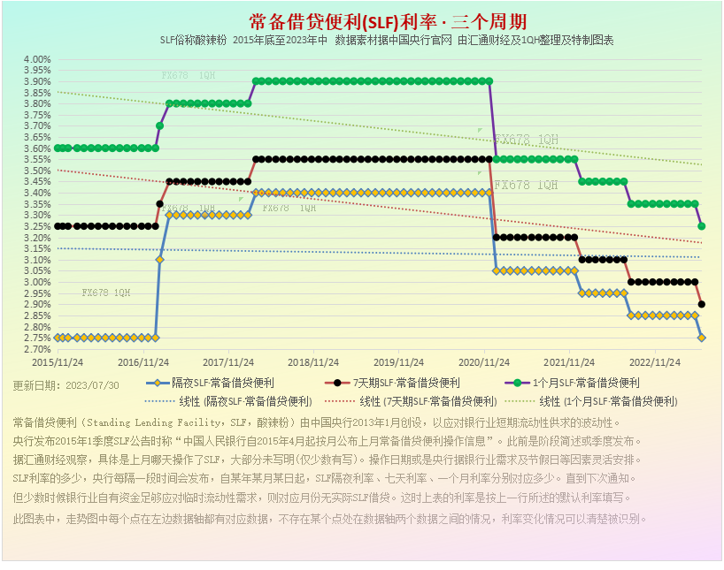 下图5:中国“常备借贷便利(SLF,俗称酸辣粉)”(隔夜、七天及1个月)的历史数据一览: