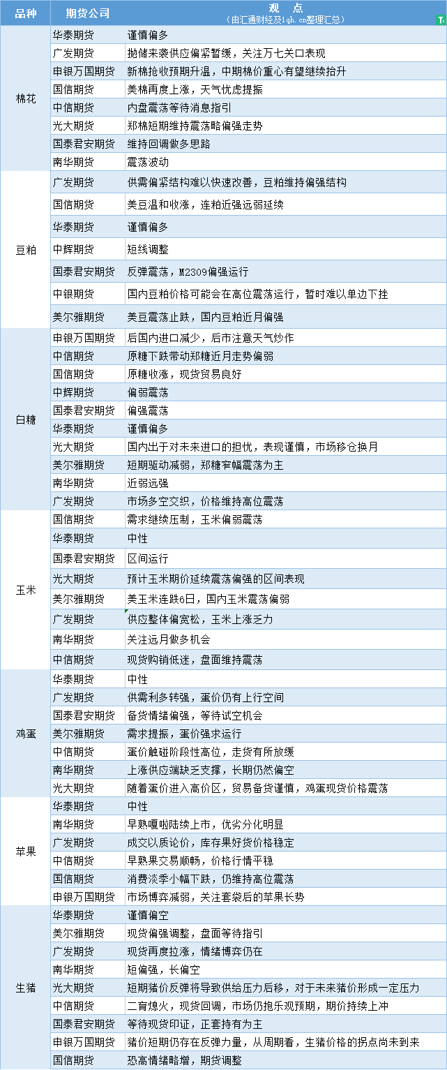 期货公司观点汇总一张图:8月2日农产品(棉花、豆粕、白糖、玉米、鸡蛋、生猪等)