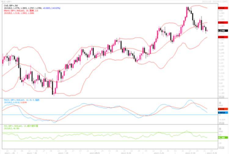 英镑兑美元继续下跌0.47%,收盘在1.2775水平。周二的数据描绘了英国经济的疲软景象,尽管英国经济比年初预期的更有韧性,但几乎没有扩张。英国抵押贷款机构Nationwide周二表示,英国7月房价同比下跌3.8%,创2009年7月以来的最大跌幅。周二的一项调查显示,尽管价格压力减弱,但受利率上升和新订单减少的影响,7月份英国制造业产出的萎缩幅度为七个月以来最大。随着通胀率下降、房价下跌和经济信心黯淡,对于英国央行加息幅度以及未来加息的空间的预期均有所下降。如果本周英央行仅加息25个基点,且参考美国方面频公布出较强的经济发展数,英镑受到的负面影响会逐渐增大。日线图上,英镑/美元隔夜市场曾跌穿近期的强支撑1.28,下行风险渐趋浓厚。不过在周四英央行利率会议出结果前,交投还需谨慎,以防加息出现意外的变数(加息50个基点而非25个基点)。