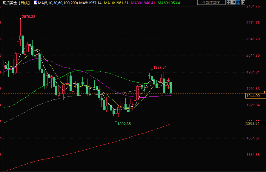 商品收盘情况:美国期金收低1.5%,结算价报1978.80美元。10月