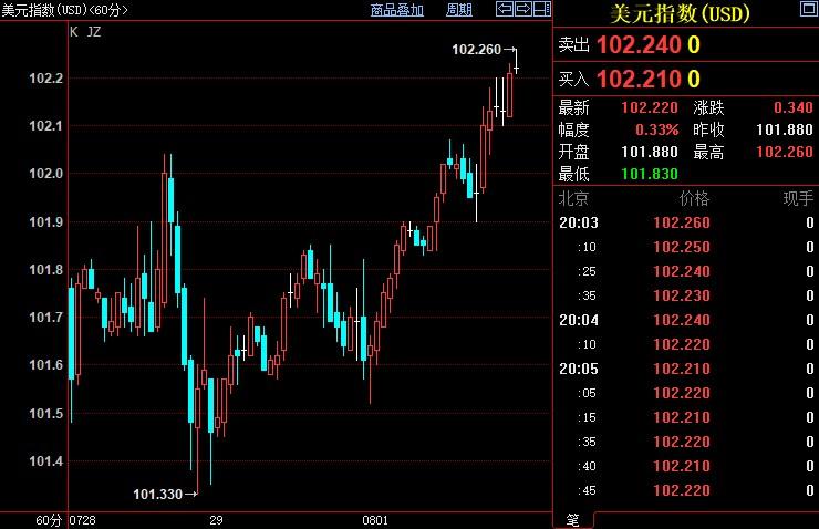 美元指数升创7月10日以来新高至102.26,美联储官员乐观言论夯实美国经济软着陆预期。此外,中国刺激措施将推动经济增长的预期削弱了黄金的避险需求。
