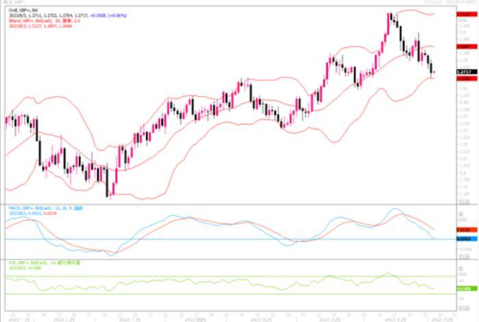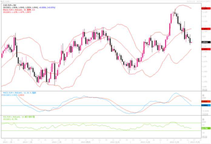 英镑兑美元当日下跌0.45%,报1.272美元,盘中最低触及1.2681。隔夜市场上,由于受到私企极为强势增长的就业报告抬捧,美元继续呈强势回升,英镑为此继续大幅度下滑。虽然本周四将迎来英国央行的利率会议,但对于加息的幅度,市场意见颇有争议。一方意见认为,自英国央行上次会议以来,7月公布的通胀数据显示,英国6月消费者物价较上年同期涨幅降至7.9%,低于预期,但在七国集团(G7)经济体中仍然是最高的。因此,英央行本周会议仍有可能要继续加息50个基点。对于这种意见,货币市场给出的概率只有37%。另一种意见认为,数据显示经济增长乏力。周二的一项调查显示,尽管价格压力减弱,但受利率上升和新订单减少的影响,7月份英国制造业产出以七个月来最快的速度萎缩。再加上英国通胀出现缓解迹象,预计英国央行将加息25个基点。货币市场对于25个基点升息预期给出的概率为63%。如果周四英央行仅加息25个基点,料将给不到英镑太大的抬捧作用。若加息50个基点,或能暂时稳住近期大幅下滑的势头。日线图上,镑美继续呈下跌走势逼近布林带通道下轨,技术指标继续下摆之中,显示英镑的抛盘压力唯有改观的迹象。需继续防范镑美的进一步走低风险。