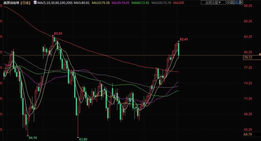 商品收盘情况:美国期金收低0.2%,报每盎司1975美元。美国原油期货收跌2.3%,结算价报每桶79.49美元;