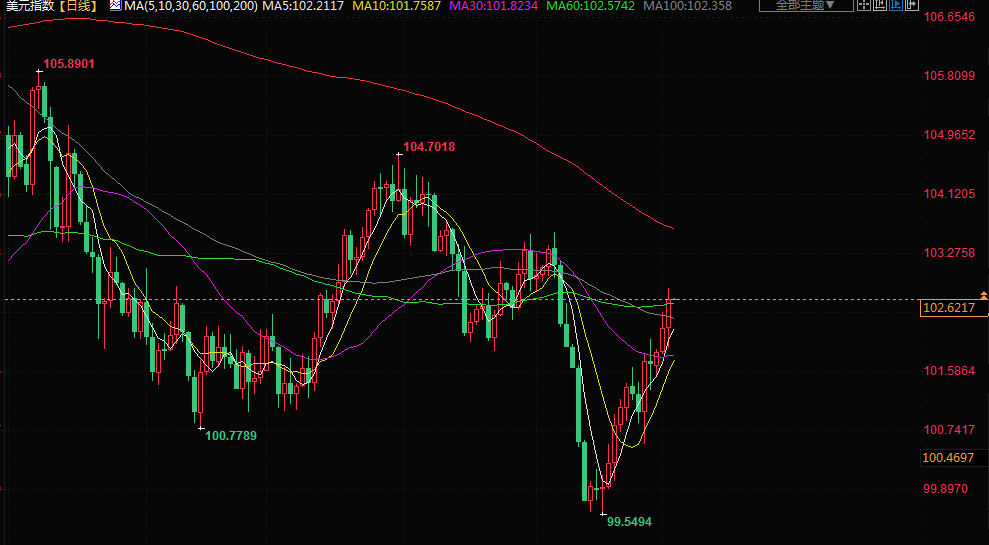 美元指数上涨0.57%,创三周新高。